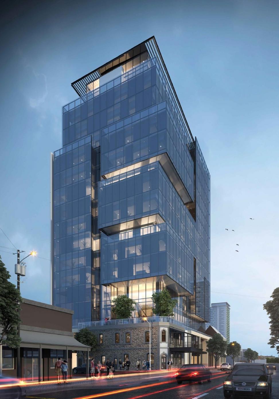 Retail tenancy at Ground floor with fifteen levels of offices and two, two storey penthouses occupying the top level.